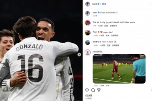 时隔2个月首发送助攻!阿诺德社媒晒庆祝照:很高兴回归!