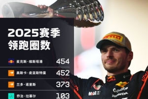 2025赛季F1领跑圈数榜:维斯塔潘454圈居首,共8人领跑过