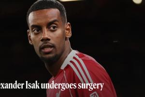 利物浦官方:伊萨克踝关节损伤+腓骨骨折手术成功,回归时间未定