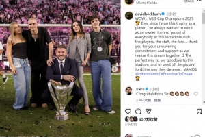 迈阿密国际老板贝克汉姆社媒晒家人与奖杯的合照,并写道:”2025年美职联冠军🏆自从作为球员捧起这座奖杯以来,我就一直渴望以老板身份再次夺冠。”