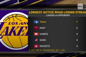 魔咒?湖人客战76人已遭遇7连败 上次在费城赢球还是8年前