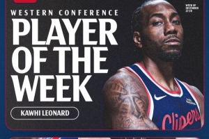 体育资讯12月30日讯 今日NBA官方宣布,快船球星莱昂纳德当选西部周最佳球员。