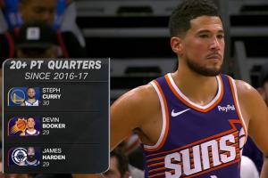 自16-17赛季以来,单节20+次数前三: