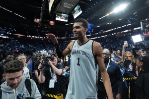 杨毅:马刺里边有四五,外边有一二,内线和后卫都不缺,马刺就缺三,缺锋线。字母会影响文班成长,别把我们马刺往字母和浓眉那引,这是第一,现在就不要梭哈他俩,不要他们俩。第二,为什么说马刺有这个条件?有的球队没这条件,甚至说我梭完之后我就这一梭子,我梭完之后万一不行,完了。马刺的特殊之处,马刺这子弹多啊,筹码多啊,马刺好几梭子,梭完一梭子不行,咱还有一梭子,是吧?马刺我们刚才说了他有这么多可以换的后卫,卡斯尔和迪伦·哈珀,我认为这俩人你可以说是非卖品,但也可以不是非卖品。