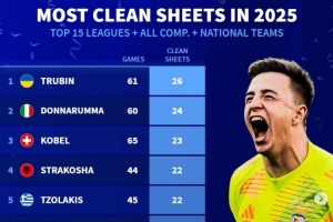 2025各项赛事零封榜:特鲁宾压多纳鲁马居首,拉亚、库尔图瓦在列