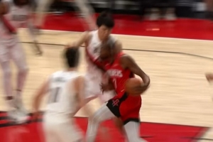 GIF-杜兰特借掩护打杨瀚森造成杨瀚森的犯规~!