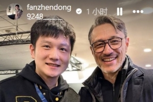 欧冠联赛阶段第8轮,多特0-2不敌国米,中国乒乓球运动员樊振东现场观战,他在个人社媒晒出与德国乒乓球运动员波尔以及多特主帅科瓦奇的合照。