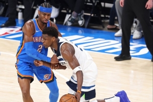本赛季,亚历山大场均32分4.4篮板6.2助攻1.3抢断;爱德华兹场均29.4分5.2篮板3.7助攻1.3抢断。