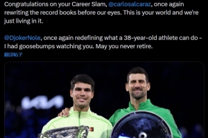 “诺瓦克·德约科维奇,你再次重新定义了一位38岁运动员的上限,看着你的比赛,我简直起了一身鸡皮疙瘩。愿你永不退役。”