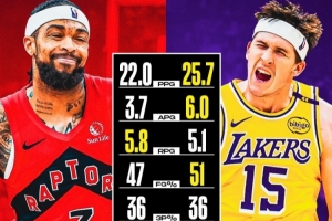 🔴 英格拉姆:场均22.0分3.7助攻5.8篮板0.8抢断0.8盖帽,投篮命中率47%,三分命中率36%,真实命中率57%。